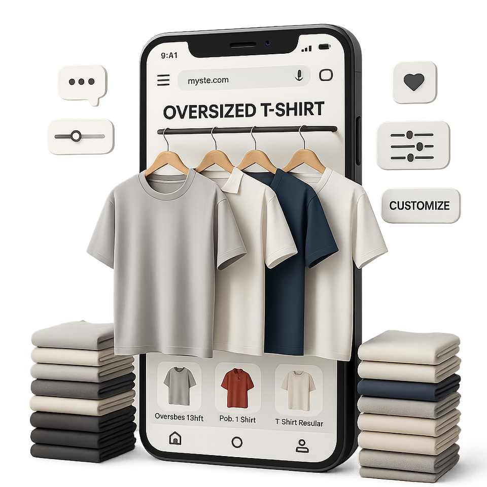 Oversized T-shirts, Polos, or Regular fits—design them your way with print-on-demand freedom.